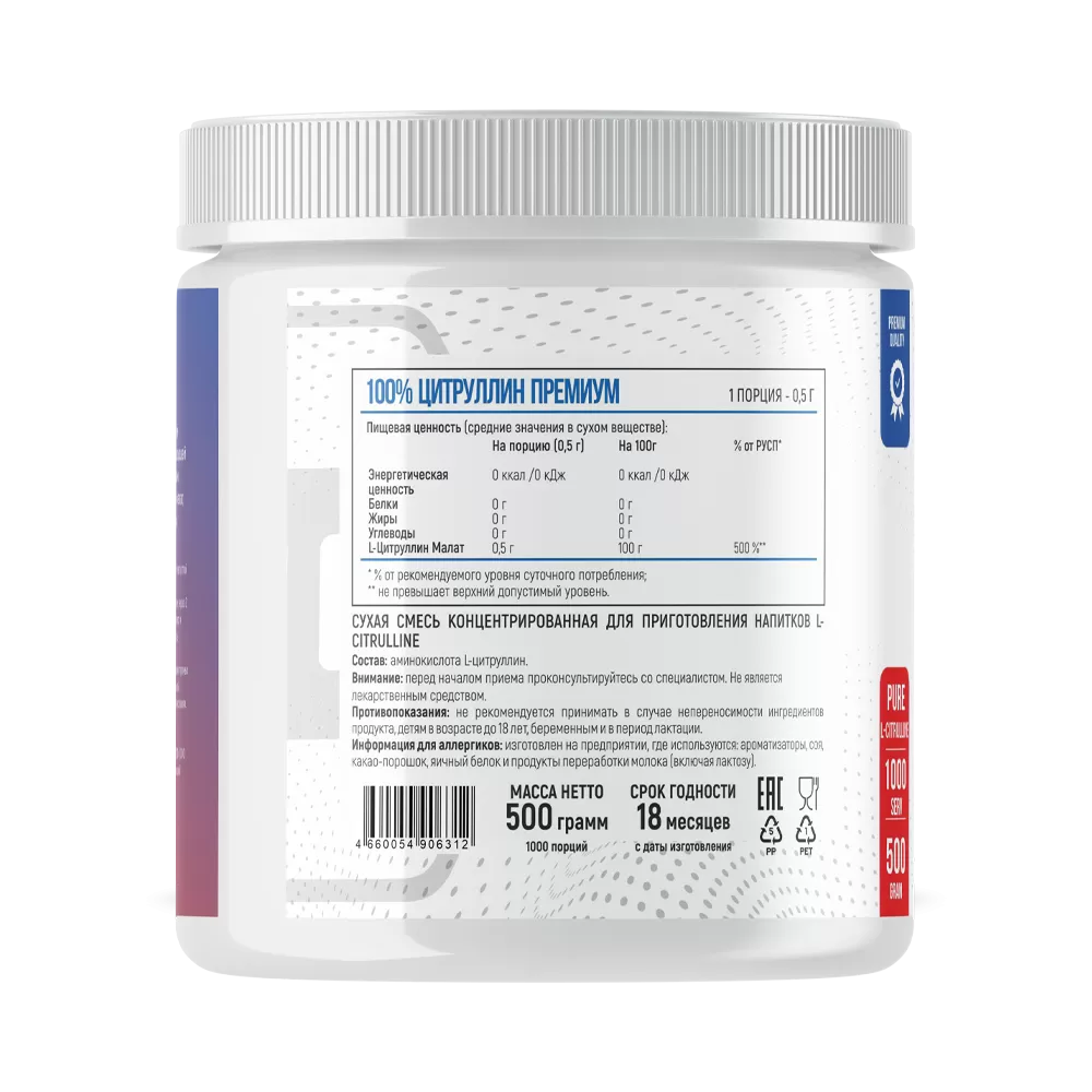 Цитруллин Премиум: природная сила для ваших мышц! Создан на основе одноименной аминокислоты, полученной из натурального сырья и прошедшей многоступенчатую очистку. Не содержит посторонних примесей, сахара и красителей. Каждая порция содержит высокобиодоступный цитруплин малат, который быстро усваивается и обеспечивает широкий спектр полезных эффектов.