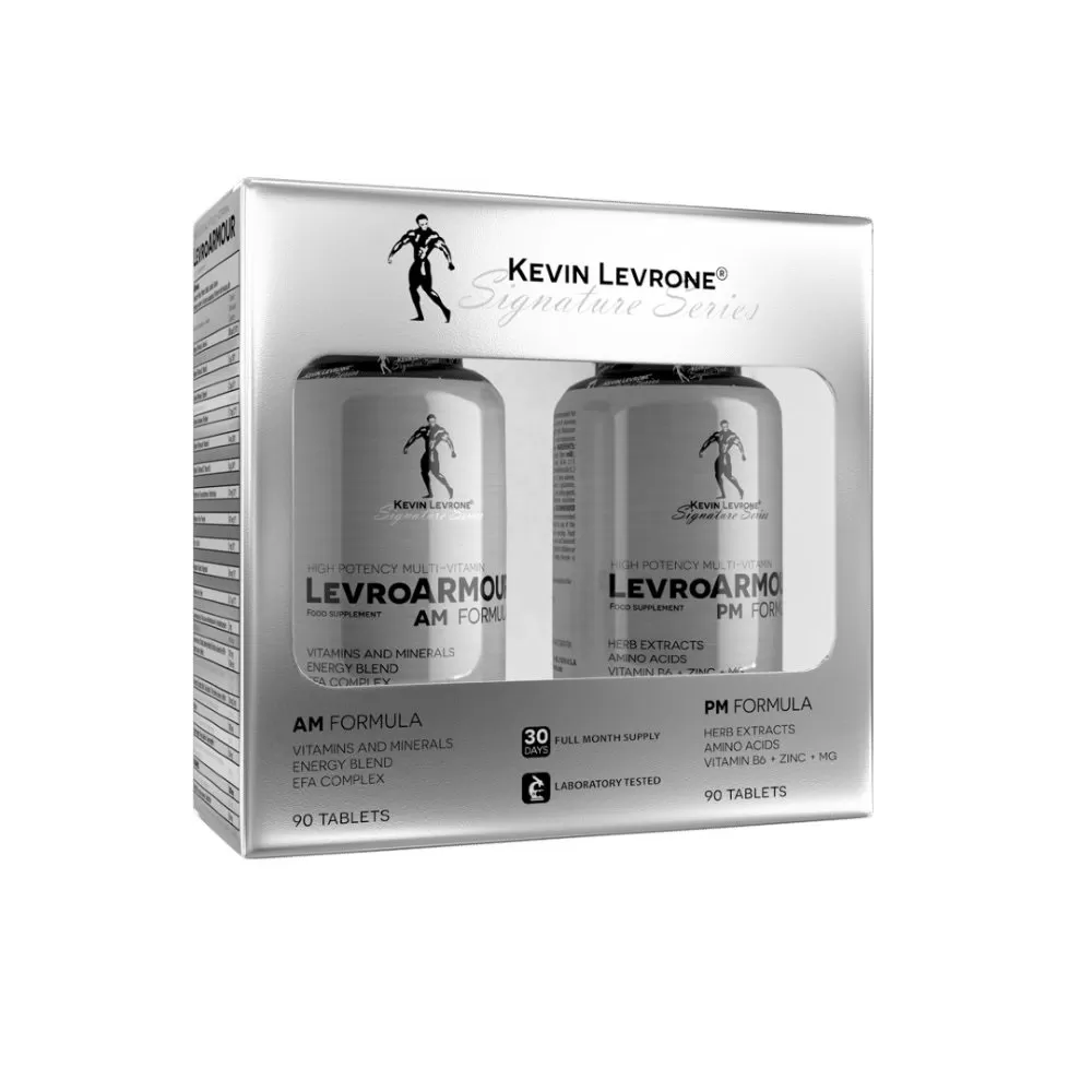 Почему стоит купить LevroArmour от KEVIN LEVRONE?LevroArmour – это двойной витаминно-минеральный комплекс, дополненный растительными экстрактами. В нем совмещено сразу две формулы: AM FORMULA для защиты организма в течение дня и PM FORMULA для улучшения качества сна и стимуляции восстановительных в течении ночи. В его составе более 20 компонентов в оптимально подобранной дозировке. Продукт прошел лабораторные исследования, максимально безопасен и подходит даже вегетарианцам.