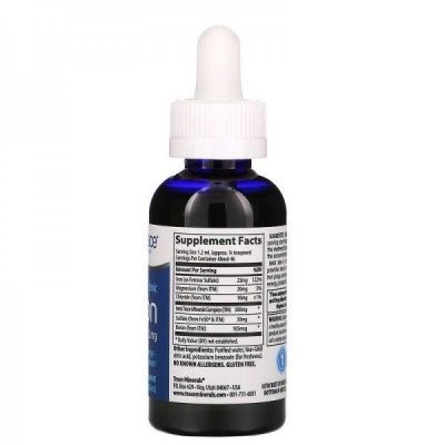 Добавка Trace Ionic Iron усилена комплексом ConcenTrace® с более чем 72 микроэлементами для синергетического эффекта. Жидкий концентрат с дозатором-капельницей имеет незначительный металлический вкус (нивелируется соком или водой).