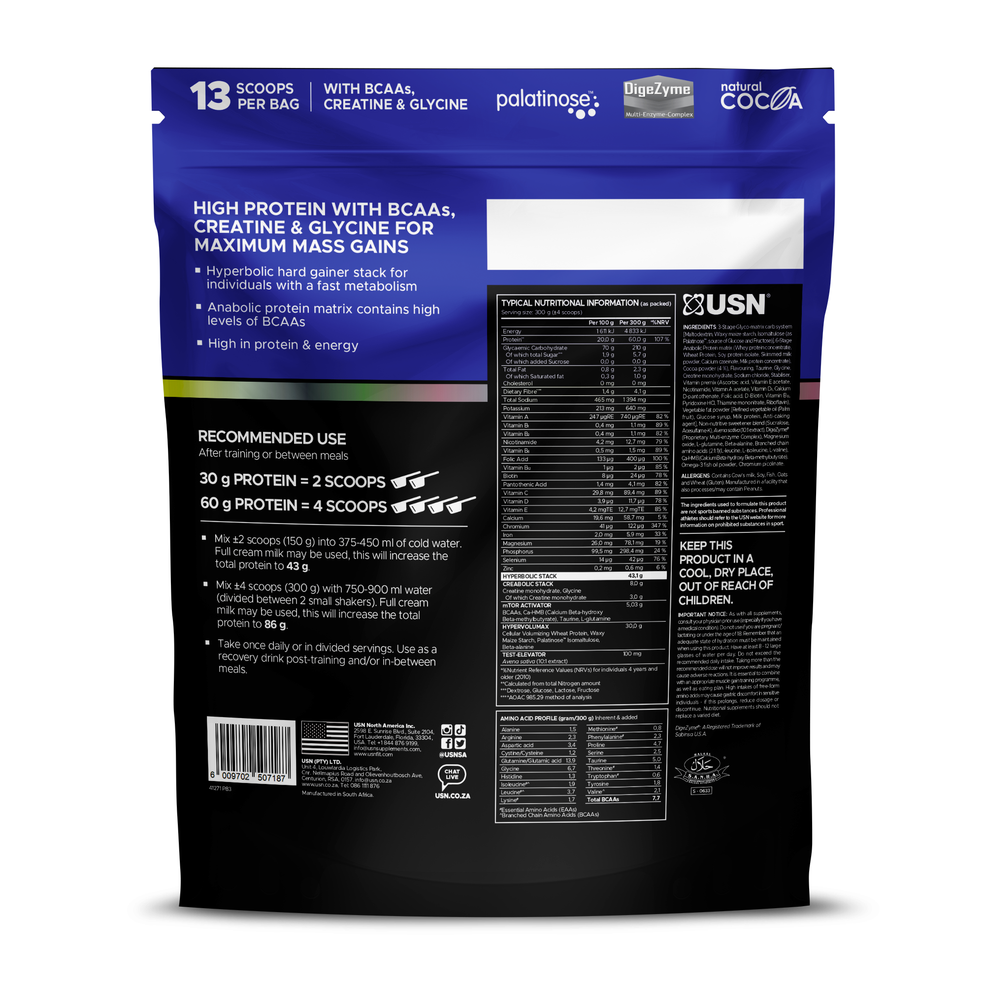USN Hyperbolic Mass (1 кг) Шоколад ‒ высококалорийный гейнер, предназначенный для тех, у кого наблюдается быстрый метаболизм из-за чего возникают трудности с набором мышечной массы.